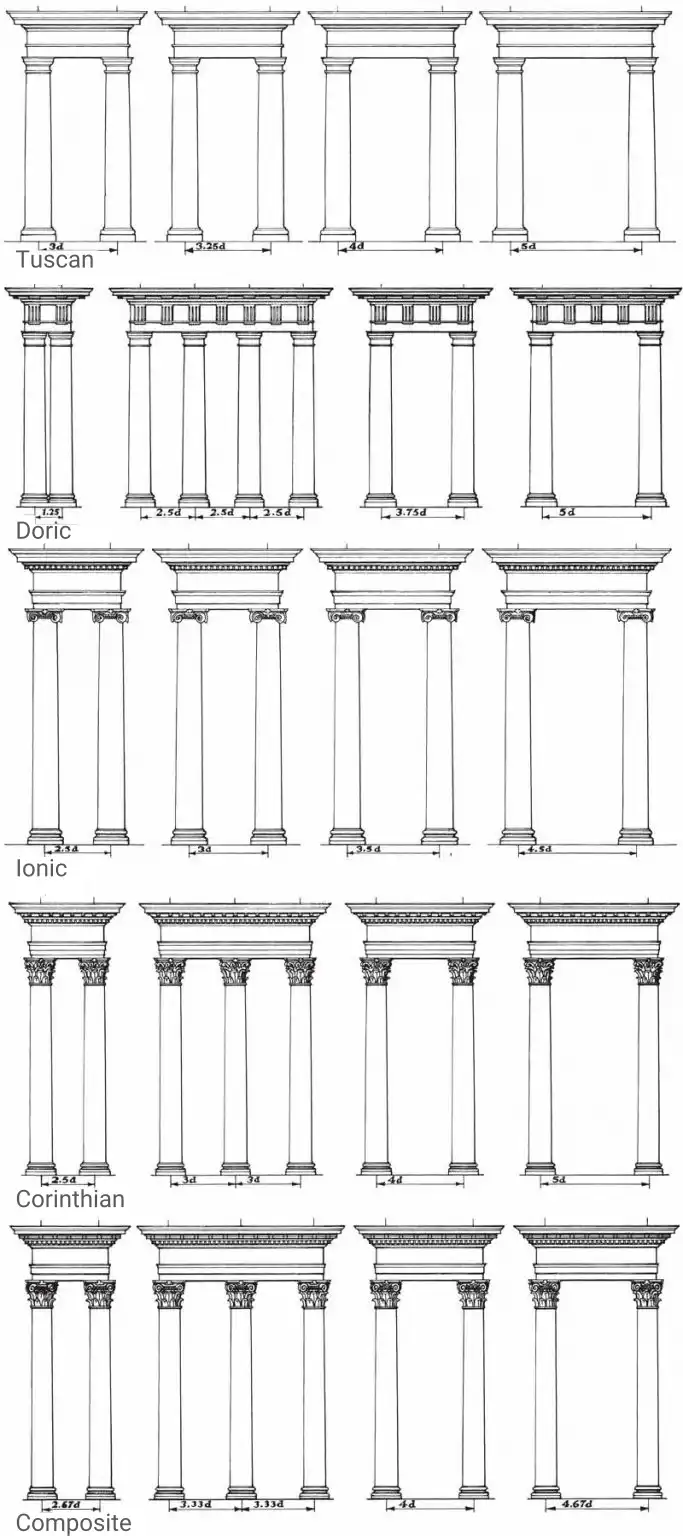 Each order has detailed rules governing column height, base, capital, entablature height, and decorative details. Mastery of these proportions helps ensure authenticity and aesthetic integrity.